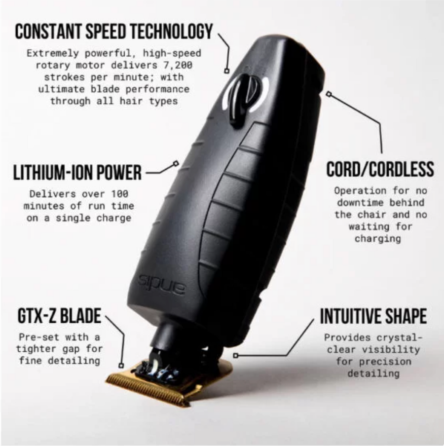 Andis GTX-EXO M-Force Cordless Trimmer takes precision and power to the next level. Engineered with an enhanced magnetic motor and gold GTX-Z blade, this trimmer delivers ultra-close cutting performance and unmatched control for crisp lineups, sharp edges, and flawless fades. Its fully exposed T-blade provides 360° visibility, allowing barbers and stylists to detail with pinpoint accuracy. With the freedom of cordless operation and the legendary Andis build quality, the GTX-EXO M-Force is a must-have for professionals who demand perfection.